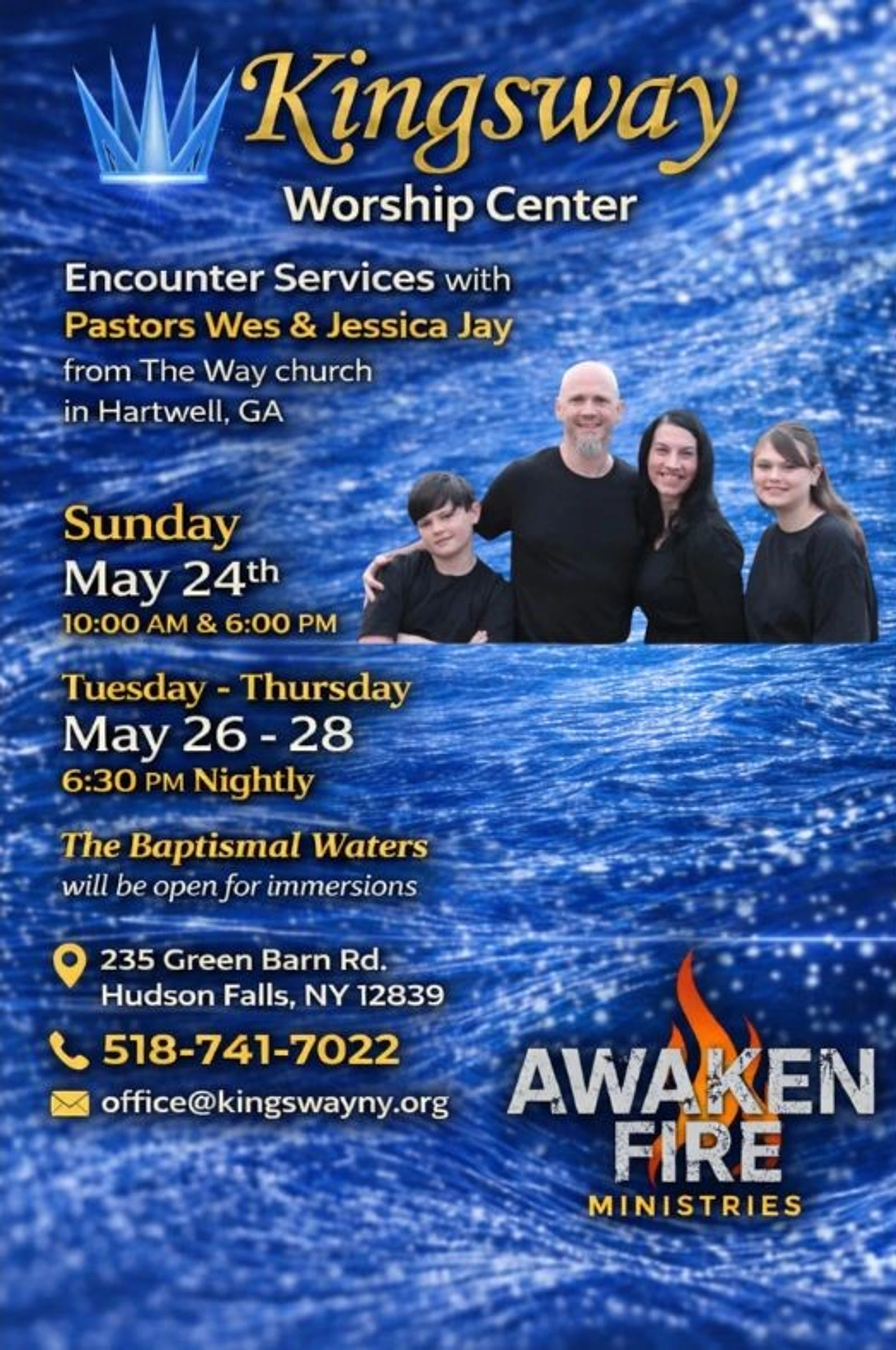 The Fire of God in the Water... Kingsway Worship Center has felt a burden and a passion to bring the presence of God into the region. We, as a community, want to become a habitation for God's glory.